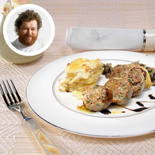 6Параллельно приготовить гарнир. Картошку очистить, нарезать тончайшими ломтиками и уложить в форму. Слой картошки, немного сливок, рубленого чеснока (на это пойдут оставшиеся четыре зубчика), щепотка соли, перца и молотого мускатного ореха. Поставить форму в духовку, разогретую до 180 градусов, на тридцать минут, предварительно запаковав ее в фольгу, чтобы не сохла верхняя часть картошки. Через тридцать минут вынуть, снять фольгу, посыпать тертым грюйером и поставить опять в духовку — уже без фольги. На десять-пятнадцать минут. Пока сыр не забронзовеет.