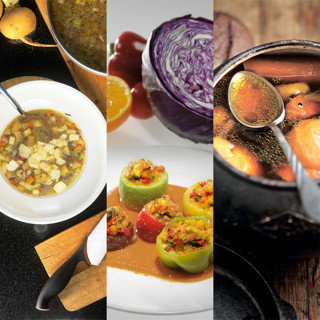 4Бросить все овощи в кипящую воду. Варятся все по-разному: кабачок надо вытащить через три минуты, перец — через пять, репку — через пятнадцать, а лук — через двадцать. Каждый овощ после варки сразу перекладывать в ледяную воду.