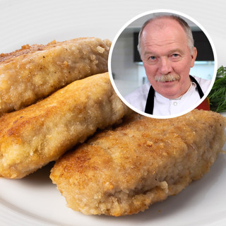 7Смешать оставшиеся сливки с яйцом. Сформовать котлеты, обвалять их в муке, затем в яично-сливочной смеси, а в конце — в подготовленных хлебных крошках.