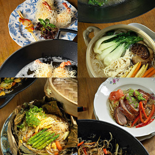 4Вок с курино-свиным бульоном поставить на огонь. Незадолго до кипения добавить подсолнечное масло, на минуту отправить туда лапшу, потом вынуть ее шумовкой и разложить по глубоким тарелкам.