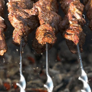6Самый ответственный момент — жарка на мангале. Если фарш недостаточно хорошо отбит и плотно насажен, он может слететь с шампура в угли. Поэтому, если вы делаете сразу много, для верности можно сначала пожарить один пилотный кебаб и посмотреть, как он будет себя вести. Если он получится, поставить на мангал остальные и жарить до коричневой корочки.