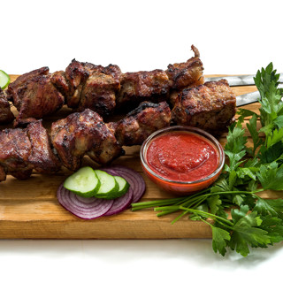 10Подавать шашлык из свинины с томатным соусом или аджикой.