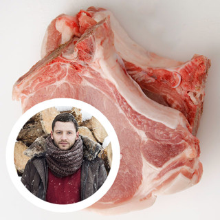 5Подавать готовую корейку с тремя видами лука и грушевым пюре.