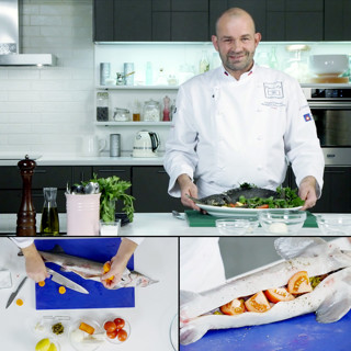 Запеченный осетр на бане из шампанского