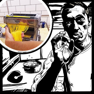 5Обрезать неровные края раскатанного теста. С помощью насадок на паста-машине разрезать тесто на желаемую пасту (паппарделле, тальолини). Из обрезанного теста также нарезать пасту мальтальяти (ее можно использовать в супах). Просушить пасту в теплом, сухом месте.