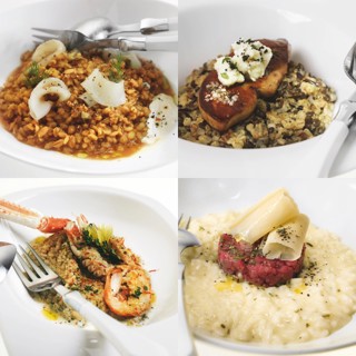Ризотто из чечевицы, перловки, гречки и дикого риса с фуа-гра и козьим сыром
