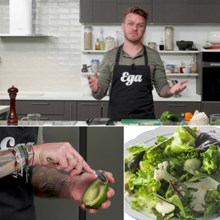 4Авокадо разрезать пополам, убрать косточку и с помощью столовой ложки отделить мякоть от кожуры.
