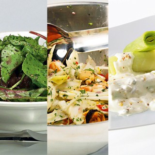 В роли зеленой базы тут используются салатные листья с горчичным и перечным душком, отлично подчеркивающим вкус белой редьки и красной редиски. Можно использовать не два, а три или больше видов редьки: например, взять еще зеленую и черную. Последняя, впрочем, горьковата для салата в чистом виде, поэтому ее можно предварительно слегка помариновать в растительном масле или в сметанном соусе.