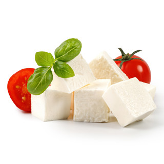 7Твердую фету нарезать острым ножом на прямоугольные ломтики толщиной в 1 см. Чтобы сыр не прилипал к лезвию, нож можно предварительно окунуть в теплую воду.