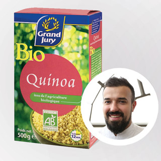 1Киноа отварить в подсоленной воде с добавлением веточки тимьяна и сливочного масла до готовности. Откинуть на сито и просушить.