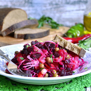 Винегрет из запеченных овощей с квашеной капустой