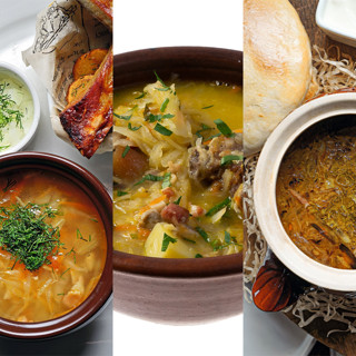 5Переложить пассеровку в бульон с капустой и готовить еще 10 минут, затем положить туда припущенную квашеную капусту. Довести до кипения, заправить запеченной фасолью, сахаром, солью, черным молотым перцем и яблочным уксусом и снять с огня.