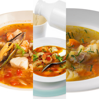 Звучит хорошо, но на фото совсем другой суп: без молока и сливок, с фасолью, и с креветками вместо трески.