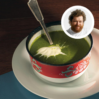 Несмотря на значительное присутствие шпината главным в этом супе является все-таки кресс-салат. Он дает тонкую перечную горчинку, а шпинат служит для увеличения вегетативной массы и для придания похлебке бодрого зеленого цвета — потому что, в отличие от кресс-салата, при нагревании не превращается в бурую водоросль.
