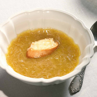 8Сверху выложить на поверхность крутоны. Дальше действовать быстро — посыпать крутоны тертым сыром и поставить в духовку на верхнюю полку под гриль. Если нет гриля, то готовить можно просто в духовке, но в таком случае поставить тарелки с супом на водяную баню: налить в противень воды, поставить в него тарелки или горшочки с супом и убрать в разогретую до 210 градусов духовку. Суп под грилем должен провести 5 минут, в духовке — 10 минут. Как только сыр запечется красивой корочкой — немедленно доставать суп и нести к столу.