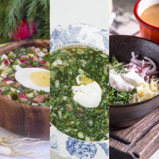 2Все овощи выложить в тарелку и залить квасом, украсить зеленью. Караси коптить на горячем копчении в течение 45 минут. Разобрать на филе и добавить в окрошку.
