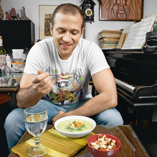 2Слегка остудить суп и пройтись по нему блендером. Разбавить пюре сливками до консистенции сметаны или жиже, кому как нравится. Посолить по вкусу и еще раз довести до кипения.
