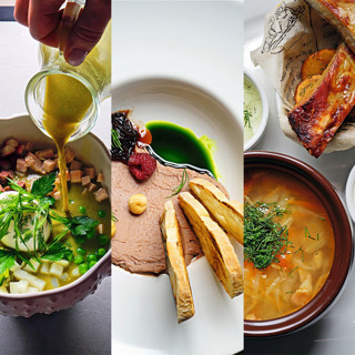 4Готовые щи подать в горшочке, посыпав рубленой зеленью. На отдельном блюде подать картофель «Айдахо» и копченые ребра. Поставить соусники — со сметаной и мелко рубленным луком.