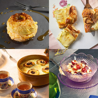 3Раскатайте тесто и придайте ему форму той емкости, в которой вы будете выпекать пирог. Уложите на дно формы тесто, сверху разложите яблочные лепестки.