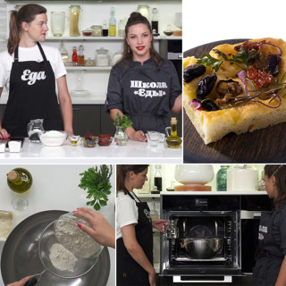 9Отправить фокаччу в духовой шкаф, разогретый до 235 градусов, в режиме конвекции с паром. Через 5 минут выключить пар, печь еще 30 минут.