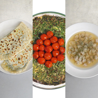 Кутабы с зеленью — одно из самых простых азербайджанских блюд. Пресная лепешка из воды и муки и пучок зелени — вот и все, что вам понадобится. Традиционный рецепт домашних кутабов очень простой, и можно наслаивать на него другие ингредиенты: добавить немного сыра, тыквы или другую любимую зелень вроде тархуна или базилика. В зависимости от региона, в кутабы могут добавлять и мясо. В Баку, например, распространены джоратские кутабы с верблюжатиной или бараньим ливером, а еще их готовят с говядиной и курдючным жиром. Мясные кутабы слегка смазывают сливочным маслом и посыпают сумахом, кислой пряностью из сушеного барбариса, а вегетарианские подают с мацони и чесночным соусом. Есть кутабы принято руками: изначально это была пища воинов в походах и им, понятное дело, было не до условностей. Мы приготовили кутабы с зеленью по классическому рецепту.Энергетическая ценность на порцию