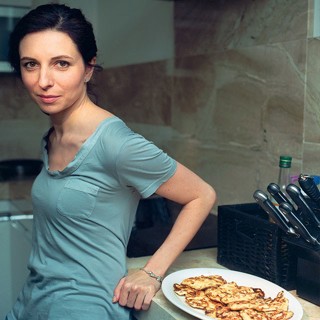 3Через десять минут, не размешивая содержимое емкости, можно приступить к выпеканию оладий. Это удобно делать столовой ложкой, зачерпывая размякшую мацу и выливая ее на хорошо разогретую сковороду, политую растительным маслом. В одну столовую ложку помещается столько мацы, сколько требуется на одну оладушку. Тесто быстро схватывается, поэтому жарить нужно всего лишь по несколько секунд с каждой стороны.