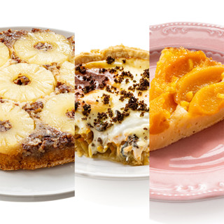 11Готовый пирог аккуратно вынуть из формы и положить на блюдо ананасами вверх. Подавать теплым или холодным.