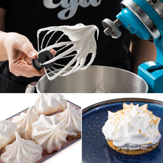 2Поставить на водяную баню (следить, чтобы стенки миски и поверхность воды не касались друг друга) и разогреть до 50 градусов, чтобы себя обезопасить, если использовать в сыром виде. Можно использовать термометр или просто протирать немного массы между пальцами. Если сахар перестал чувствоваться — меренга разогрета достаточно. Все это время аккуратно мешать массу венчиком или миксером.