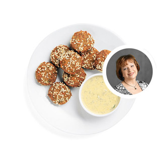 Очень пряный и красивый вариант фалафеля. В «тесто» входит внушительный набор специй: чили, зира и кориандр. Непосредственно перед фритюром шарики посыпают кунжутом.Энергетическая ценность на порцию