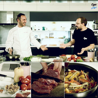 3Огурцы нарезать тонкой соломкой, помидоры тонкими полукольцами. На сулугуни тонким слоем намазать творожную начинку, выложить помидоры, огурцы и листья эстрагона, завернуть в трубочку и разрезать пополам по диагонали. Подавать с ореховым соусом.