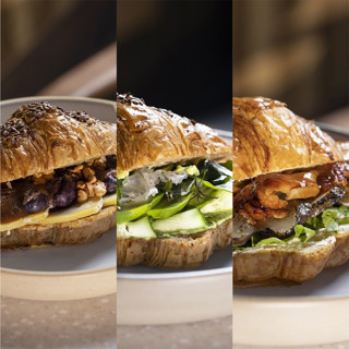 3Перед подачей разрезать круассан вдоль пополам, одну половину смазать крем-чизом с юдзу (30 г), поверх выложить нарезанный топинамбур (40 г).