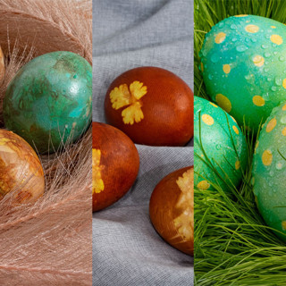 5Яйца тщательно вымыть, не обсушивать. Приложить пару веточек к влажному яйцу и постараться их прилепить, насколько получится.