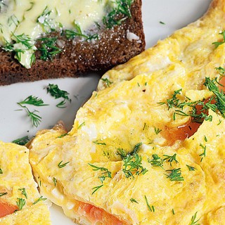 6Вылить яичную смесь на сковороду, стараясь равномерно покрыть все мясо. Накрыть сковороду крышкой и готовить омлет три-четыре минуты, не мешая, пока яйца как следует не схватятся.