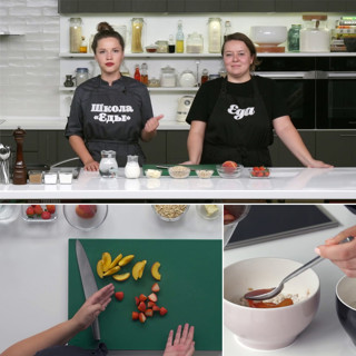 1Овсяные хлопья залить водой прямо в порционных тарелках и поставить в пароварку на 10 минут.