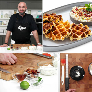 7Выложить ложкой тесто в вафельницу и, закрыть и жарить около 2,5 минуты на среднесильном огне.